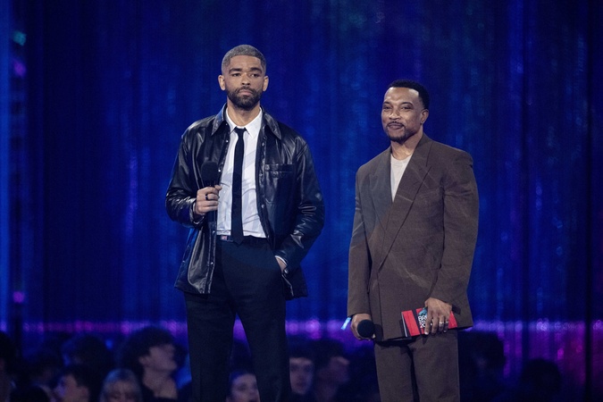 Kingsley Ben-Adir and Ashley Walters presenting the BRIT Award for Hip Hop / Grime / Rap Act at the 2024 BRIT Awards at The O2 Arena, London on 2 March 2024