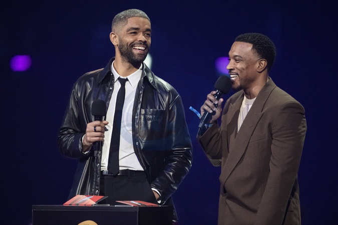 Kingsley Ben-Adir and Ashley Walters presenting the BRIT Award for Hip Hop / Grime / Rap Act at the 2024 BRIT Awards at The O2 Arena, London on 2 March 2024
