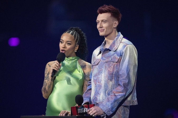 Yinka Bokinni and Jack Saunders presenting the BRIT Award for International Group of the Year at the 2024 BRIT Awards at The O2 Arena, London on 2 March 2024EDITORIAL USE ONLY, Credit:Dafydd Owen / Avalon