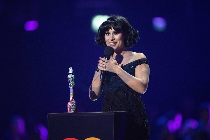 RAYE being presented the BRIT Award for Best New Artist at the 2024 BRIT Awards at The O2 Arena, London on 2 March 2024