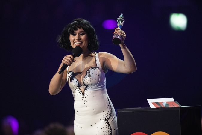 RAYE being presented the BRIT Award for Artist of the Year at the 2024 BRIT Awards at The O2 Arena, London on 2 March 2024