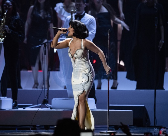 RAYE performing live at the 2024 BRIT awards ceremony, O2 Arena, London, on 2 March 2024