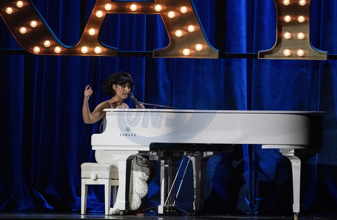 RAYE performing live at the 2024 BRIT awards ceremony, O2 Arena, London, on 2 March 2024
