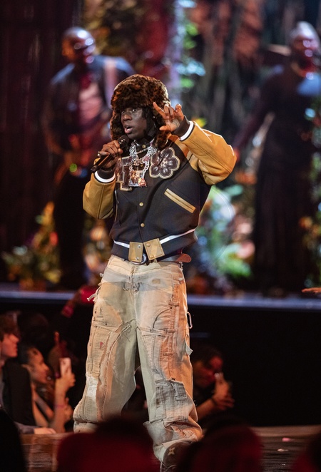 Rema performing live at the 2024 BRIT awards ceremony, O2 Arena, London, on 2 March 2024