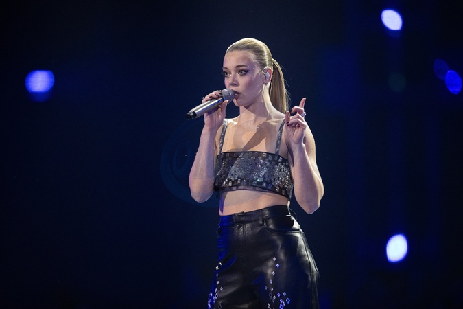 Becky Hill and Chase & Status performing live at the 2024 BRIT awards ceremony, O2 Arena, London, on 2 March 2024