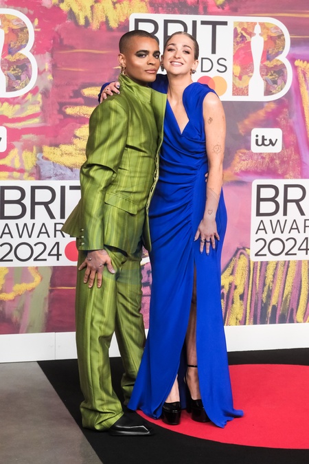 Layton Williams and Harriet Rose poses on the red carpet at the BRITS Awards on Saturday 2 March 2024 at O2 Arena, London. ., Credit:Julie Edwards / Avalon