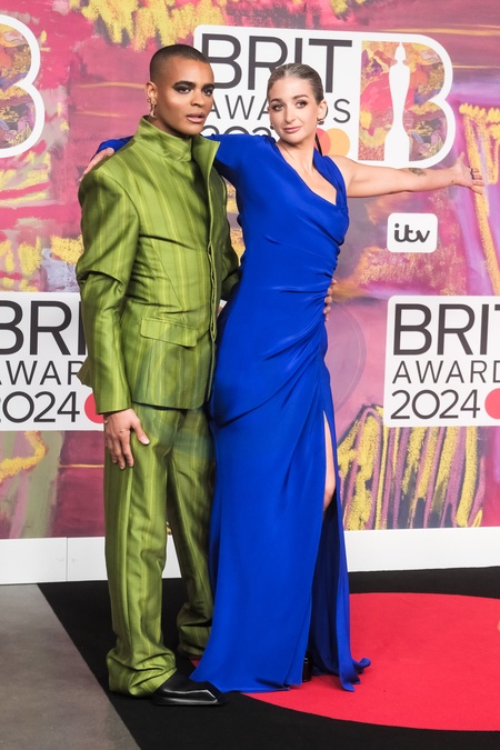 Layton Williams and Harriet Rose poses on the red carpet at the BRITS Awards on Saturday 2 March 2024 at O2 Arena, London. ., Credit:Julie Edwards / Avalon