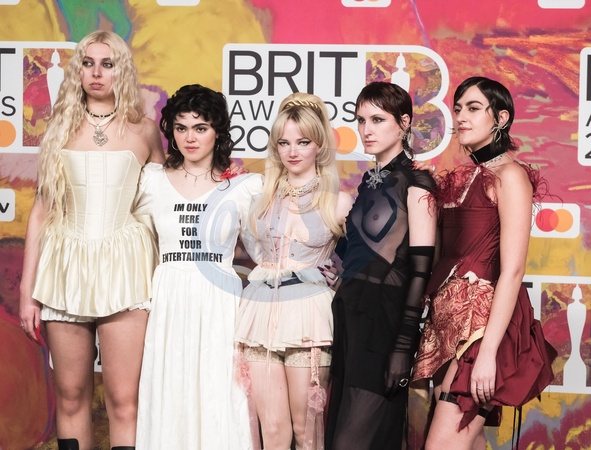 Emily Roberts, Abigail Morris, Aurora Nishevci, Georgia Davies and Lizzie Mayland of The Last Dinner Party poses on the red carpet at the BRITS Awards on Saturday 2 March 2024 at O2 Arena, London. ., Credit:Julie Edwards / Avalon