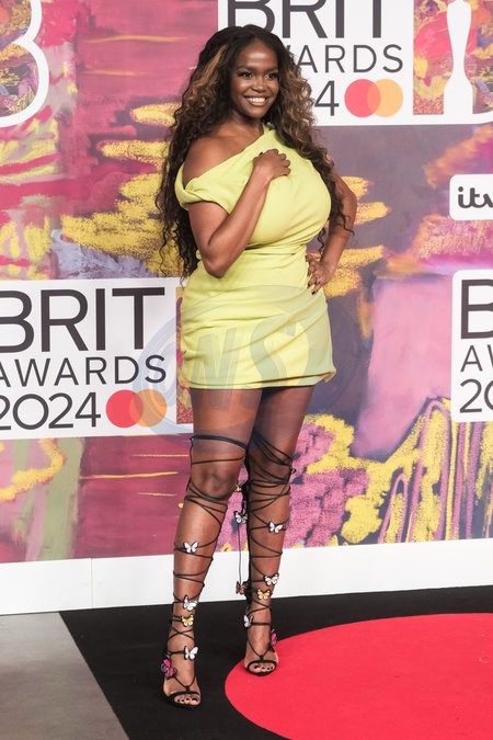Oti Mabuse poses on the red carpet at the BRITS Awards on Saturday 2 March 2024 at O2 Arena, London. ., Credit:Julie Edwards / Avalon