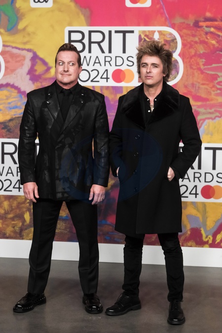 Tré Cool and Billie Joe Armstrong of Green Day poses on the red carpet at the BRITS Awards on Saturday 2 March 2024 at O2 Arena, London. ., Credit:Julie Edwards / Avalon
