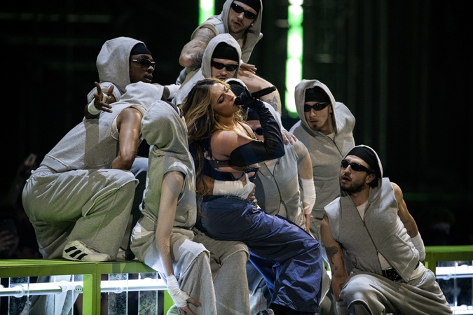 Tate McRae performing live at the 2024 BRIT awards ceremony, O2 Arena, London, on 2 March 2024