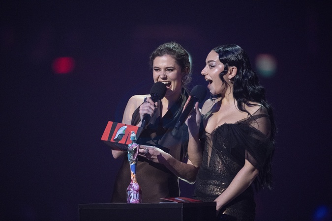 Alison Oliver and Carlie XCX presenting the BRIT Award for Dance Act at the 2024 BRIT Awards at The O2 Arena, London on 2 March 2024