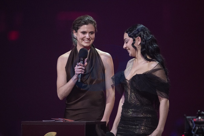 Alison Oliver and Carlie XCX presenting the BRIT Award for Dance Act at the 2024 BRIT Awards at The O2 Arena, London on 2 March 2024