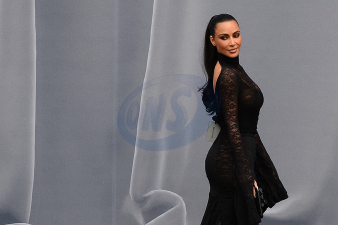 Kim Kardashian pojawia się na pokazie mody damskiej Balenciaga jesień/zima 2024-2025 podczas Tygodnia Mody w Paryżu (PFW) w Dôme des Invalides