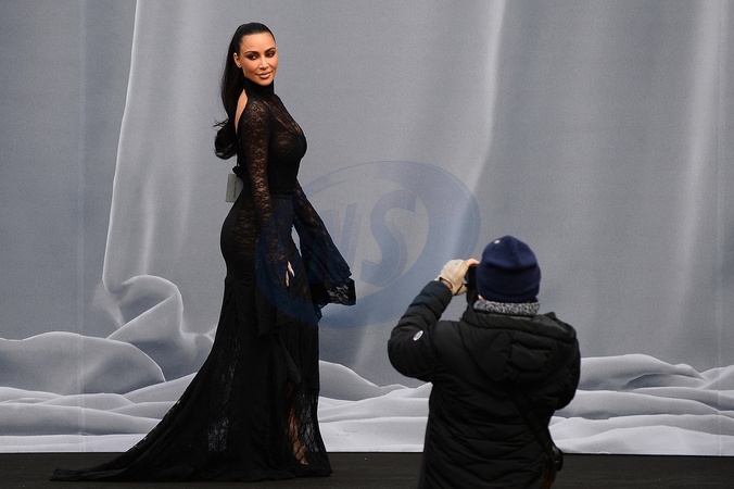 Kim Kardashian pojawia się na pokazie mody damskiej Balenciaga jesień/zima 2024-2025 podczas Tygodnia Mody w Paryżu (PFW) w Dôme des Invalides