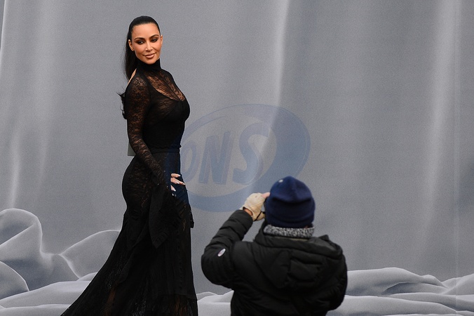 Kim Kardashian pojawia się na pokazie mody damskiej Balenciaga jesień/zima 2024-2025 podczas Tygodnia Mody w Paryżu (PFW) w Dôme des Invalides