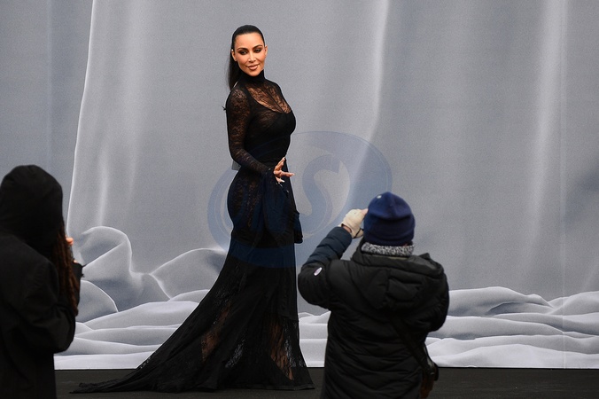 Kim Kardashian pojawia się na pokazie mody damskiej Balenciaga jesień/zima 2024-2025 podczas Tygodnia Mody w Paryżu (PFW) w Dôme des Invalides