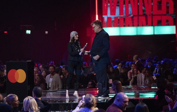 Jaime Winstone and Stuart Worden presenting the BRIT Award for Album of the Year at the 2024 BRIT Awards at The O2 Arena, London on 2 March 2024