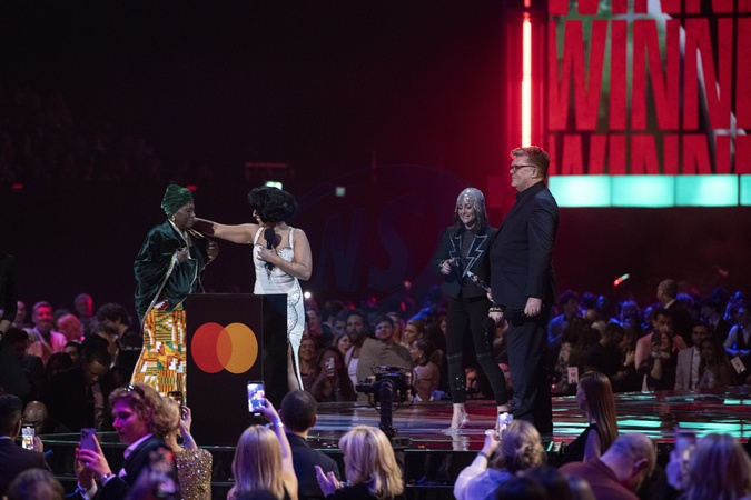 Jaime Winstone and Stuart Worden presenting the BRIT Award for Album of the Year at the 2024 BRIT Awards at The O2 Arena, London on 2 March 2024