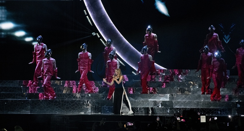 Kylie Minogue performing live at the 2024 BRIT awards ceremony, O2 Arena, London, on 2 March 2024
