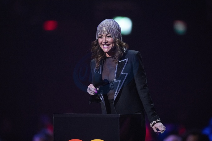 Jaime Winstone presenting the BRIT Award for Album of the Year at the 2024 BRIT Awards at The O2 Arena, London on 2 March 2024