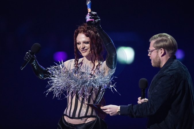Bimini Bon Boulash and Rob Beckett presenting the BRIT Award for International Song of the Year at the 2024 BRIT Awards at The O2 Arena, London on 2 March 2024EDITORIAL USE ONLY, Credit:Dafydd Owen / Avalon