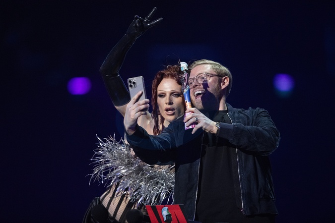 Bimini Bon Boulash and Rob Beckett presenting the BRIT Award for International Song of the Year at the 2024 BRIT Awards at The O2 Arena, London on 2 March 2024EDITORIAL USE ONLY, Credit:Dafydd Owen / Avalon