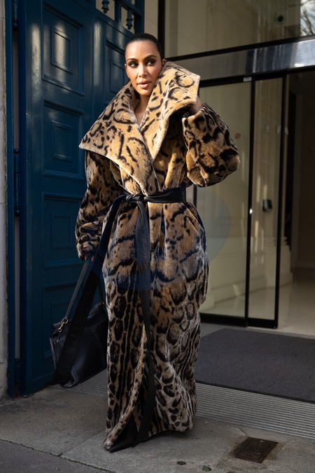 PP - Kim Kardashian s'est blessée aux doigts de la main gauche dans un manteau de fourrure à imprimé animal Balenciaga sort d'un RDV chez Maison Margiela en marge de la mode femme automne / hiver 2024-2025 lors de la Fashion Week de Paris (PFW)
