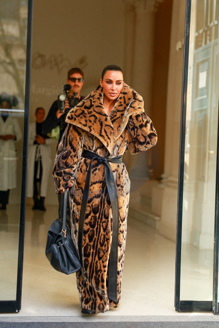 Kim Kardashian kontuzjowała palce lewej ręki w futrze ze zwierzęcym wzorem Balenciagi po spotkaniu w Maison Margiela na marginesie pokazu mody damskiej jesień/zima 2024-2025 podczas Tygodnia Mody w Paryżu