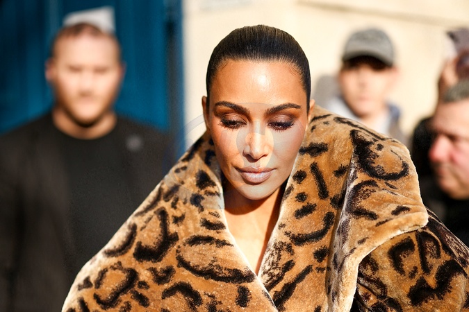PP - Kim Kardashian s'est blessée aux doigts de la main gauche dans un manteau de fourrure à imprimé animal Balenciaga sort d'un RDV chez Maison Margiela en marge de la mode femme automne / hiver 2024-2025 lors de la Fashion Week de Paris (PFW)