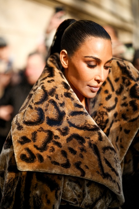 Kim Kardashian kontuzjowała palce lewej ręki w futrze ze zwierzęcym wzorem Balenciagi po spotkaniu w Maison Margiela na marginesie pokazu mody damskiej jesień/zima 2024-2025 podczas Tygodnia Mody w Paryżu