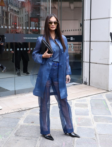 gwiazdy na pokazie mody damskiej „Akris” na jesień-zimę 2024/2025 podczas paryskiego tygodnia mody