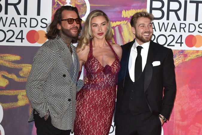 ***EDITORIAL USE ONLY*** Pete Wicks, Zara McDermott and Sam Thompson attends The BRIT Awards 2024 at The O2 in London, England. Saturday 2nd March 2024. (EDITORIAL USE ONLY). -, Credit:JW / Avalon