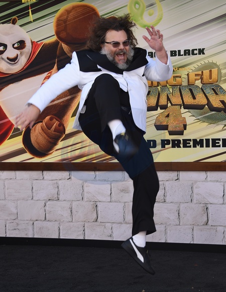 Jack Black arriving to ‘Kung Fu Panda 4' World Premiere at AMC The Grove 14 on March 03, 2024 in Los Angeles