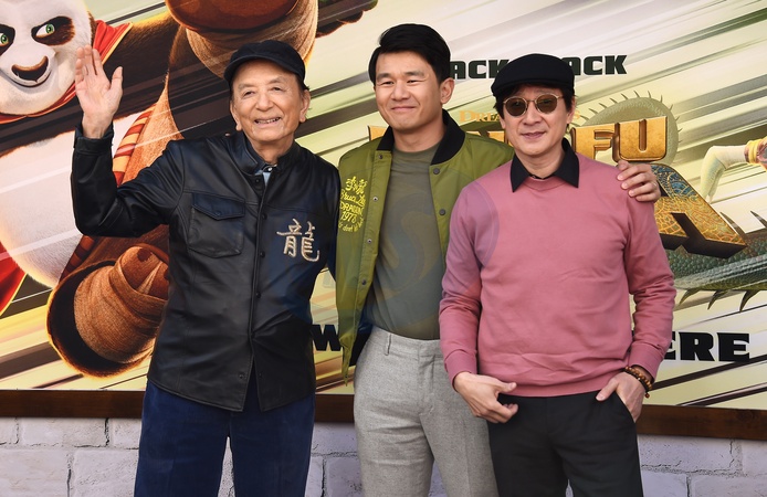 James Hong, Ronny Chieng and Ke Huy Quan arriving to ‘Kung Fu Panda 4' World Premiere at AMC The Grove 14 on March 03, 2024 in Los Angeles