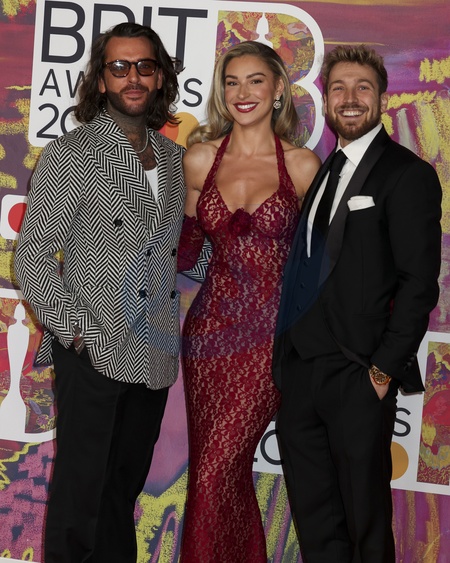 **Editorial Use Only**Pete Wicks, Zara McDermott and Sam Thompson at the BRIT Awards 2024 at the O2 London in Greenwich, London, United Kingdom on 2 March 2024., Credit:Cat Morley / Avalon