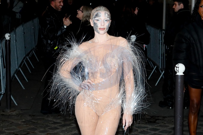 Arrivées au défilé de mode Mugler collection femme automne/hiver 2024-2025 au lycée Carnot à Paris