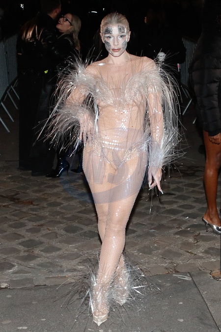 Arrivées au défilé de mode Mugler collection femme automne/hiver 2024-2025 au lycée Carnot à Paris