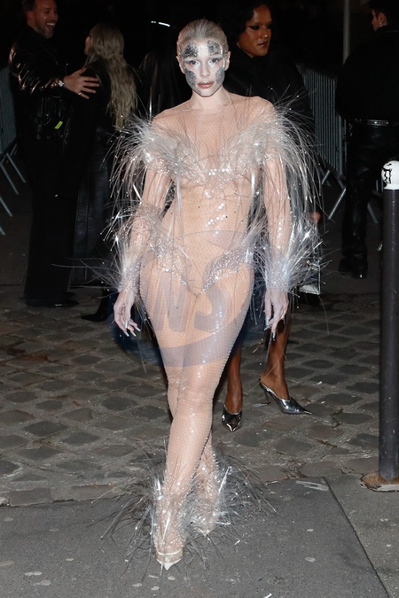 Arrivées au défilé de mode Mugler collection femme automne/hiver 2024-2025 au lycée Carnot à Paris