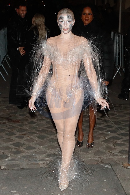 Arrivées au défilé de mode Mugler collection femme automne/hiver 2024-2025 au lycée Carnot à Paris