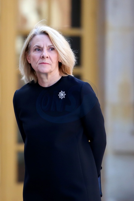Info - Catherine Pégard, 69 ans, va quitter la direction du château de Versailles après près de treize années à sa tête - Catherine Pégard, présidente de l'établissement public du château, du musée et du domaine national de Versailles - Le président Emmanuel Macron reçoit son altesse impériale Naruhito, prince héritier du Japon au château de Versailles à l'occasion de la saison culturelle « Japonisme 2018 » le 12 septembre 2018. © Stéphane Lemouton / Bestimage French president Emmanuel Macron welcomes Prince Nahurito at Versailles castle on september 12th 2018