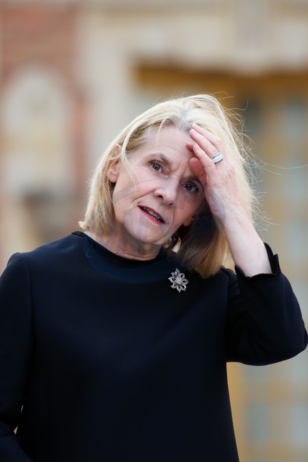 Info - Catherine Pégard, 69 ans, va quitter la direction du château de Versailles après près de treize années à sa tête - Catherine Pégard, présidente de l'établissement public du château, du musée et du domaine national de Versailles - Le président Emmanuel Macron reçoit son altesse impériale Naruhito, prince héritier du Japon au château de Versailles à l'occasion de la saison culturelle « Japonisme 2018 » le 12 septembre 2018. © Stéphane Lemouton / Bestimage French president Emmanuel Macron welcomes Prince Nahurito at Versailles castle on september 12th 2018