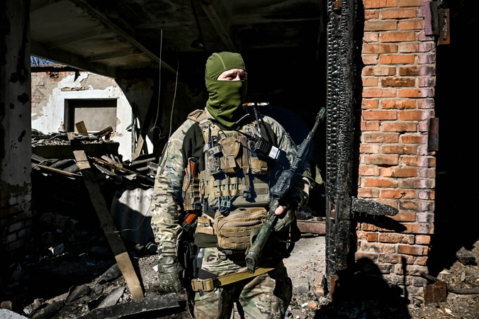 ORIKHIV, UKRAINE - FEBRUARY 28, 2024 - A police major who goes by his callsign Arab is pictured near a destroyed building in Orikhiv, Zaporizhzhia region, southeastern Ukraine., Credit:Dmytro Smolienko / Avalon