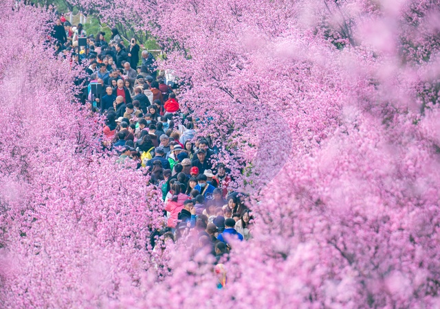 People admire the plum blossom in a park in southwest China's Chongqing Municipality Saturday, March 02, 2024., Credit:LI HONGBO / Avalon