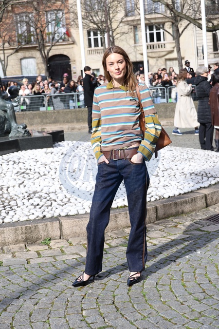 Camille Rowe - Arrivées au défilé Miu Miu mode femme automne / hiver 2024-2025 au Conseil Economique et Social lors de la Fashion Week de Paris (PFW), le 5 mars 2024. © Denis Guignebourg / Bestimage Arrivals at the Miu Miu fall/winter 2024-2025 women's fashion show at the Economic and Social Council during Paris Fashion Week (PFW), March 5, 2024.
