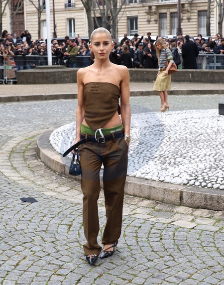 Caroline Caro Daur - Arrivées au défilé Miu Miu mode femme automne / hiver 2024-2025 au Conseil Economique et Social lors de la Fashion Week de Paris (PFW), le 5 mars 2024. © Denis Guignebourg / Bestimage Arrivals at the Miu Miu fall/winter 2024-2025 women's fashion show at the Economic and Social Council during Paris Fashion Week (PFW), March 5, 2024.