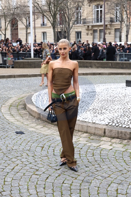 Caroline Caro Daur - Arrivées au défilé Miu Miu mode femme automne / hiver 2024-2025 au Conseil Economique et Social lors de la Fashion Week de Paris (PFW), le 5 mars 2024. © Denis Guignebourg / Bestimage Arrivals at the Miu Miu fall/winter 2024-2025 women's fashion show at the Economic and Social Council during Paris Fashion Week (PFW), March 5, 2024.