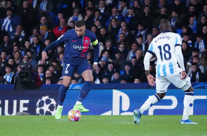 Kylian Mbappe - UEFA Champions League 2023/24 round of 16 second leg match between Real Sociedad (1) and Paris Saint-Germain (2) at the Reale Arena. San Sebastian - March 5, 2024