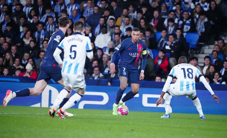 Kylian Mbappe - UEFA Champions League 2023/24 round of 16 second leg match between Real Sociedad (1) and Paris Saint-Germain (2) at the Reale Arena. San Sebastian - March 5, 2024