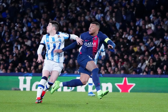 Kylian Mbappe - UEFA Champions League 2023/24 round of 16 second leg match between Real Sociedad (1) and Paris Saint-Germain (2) at the Reale Arena. San Sebastian - March 5, 2024